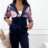 VÝRAZNÝ KVĚTINOVÝ DESIGN - Vynikněte díky jedinečnému, poutavému květinovému potisku na bundě. Tento zářivý botanický vzor dodává klasické námořnické modré sadě svěží, ženský nádech a proměňuje jednoduchou teplákovou soupravu v rafinovaný módní kousek.